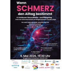 Chronische Schmerzen, Fibromyalgie, ME/CFS und Long Covid stehen im Mittelpunkt des 4. Erzhäuser Gesundheits- und Pflegetags, am Samstag, 9. Mai 2026, im Bürgerhaus Erzhausen. Ab 15:30 Uhr erwartet die Besucherinnen und Besucher ein informativer, persönlicher und stärkender Nachmittag mit Fachvorträgen, Erfahrungsberichten, Austausch und einem Marktplatz der Möglichkeiten. Der Eintritt ist frei.