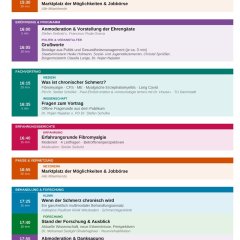 Ein besonders berührender Programmpunkt ist die Erfahrungsrunde Fibromyalgie um 16:40 Uhr. Hier kommen Betroffene zu Wort. Ihre Perspektiven machen sichtbar, was chronische Erkrankungen im Alltag bedeuten, und warum Verständnis, Austausch und ernst genommene Erfahrungen so wichtig sind.